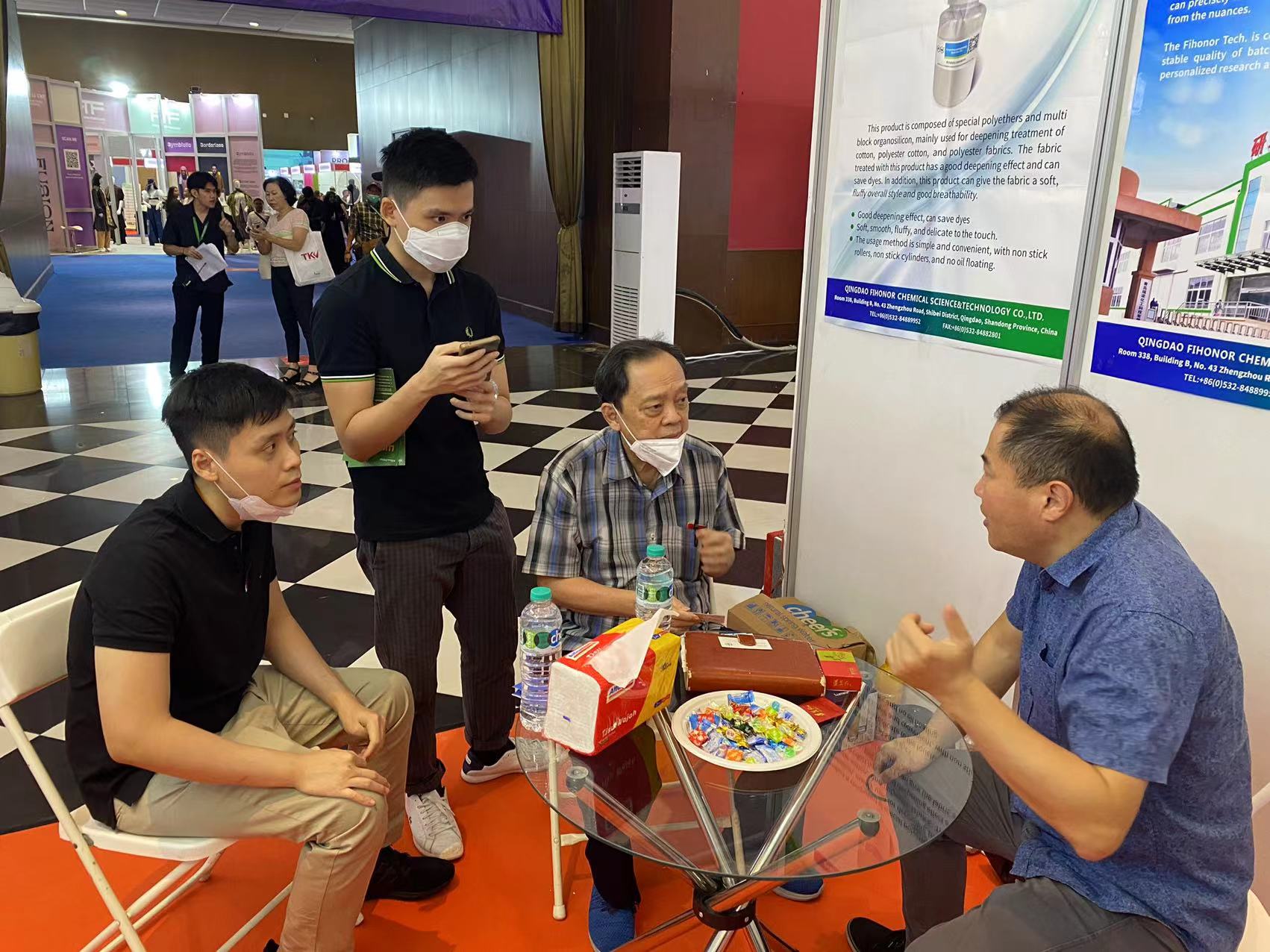 0532-84889952陽(yáng)春三月,萬(wàn)物復蘇,福諾集團再起征程,攜福諾印尼工業(yè)有限公司員工共同參加為期四日的印尼國際紡織化工展,福諾人帶來(lái)的一系列紡織助劑明星產(chǎn)品,吸引了一眾客戶(hù)駐足咨詢(xún)下單,現場(chǎng)反響熱烈,展會(huì )取得圓滿(mǎn)成功。